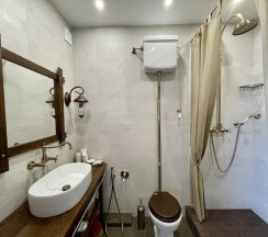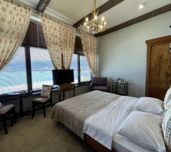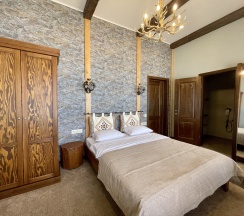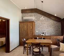 Большой 2-комнатный номер с со своим сан. узлом. В спальне расположены: 2-спальная кровать, плоский телевизор, сплит-система. Из окна спальни открывается вид на город и пицундские сосны. В просторной гостиной расположены: шкаф для одежды, диван-кровать, кресло-кровать, плоский телевизор, обеденный уголок, сплит-система. Панорамные окна с видом на Геленджикскую бухту. Дизайн номера выполнен в стиле Western/Country.Style/