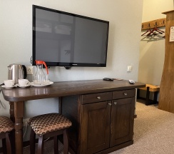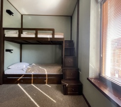Уютный номер с двумя отдельными кроватями со своим сан. узлом. В номере расположены: 2-уровневая кровать с выкатным доп. местом, шкаф для одежды, плоский телевизор, обеденный уголок, сплит-система. Окно с видом на город и пицундские сосны. Дизайн номера выполнен в стиле Western/Country.Style/ Данный вариант наиболее подходит для проживания гостей, предпочитающих спать отдельно или детей.