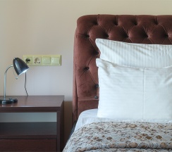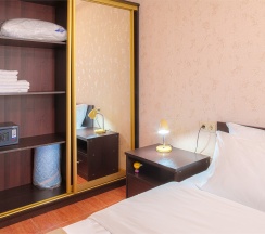 Двухместный номер Стандарт сочетает в себе уют и комфорт. Интерьер выполнен в теплых тонах. Номер имеет небольшой балкон с видом на озеро Ак-Гель, где очень приятно посидеть в хорошую погоду.