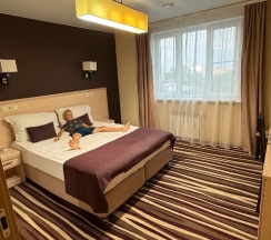 Это была наша первая ночь в данном отеле по пути из Севастополя в Казань, возвращаясь с отпуска. Мы разместились в одном двухместном номере с мужем и кошкой, а наш друг — в одноместном номере.