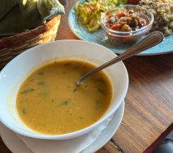Парение в бане было невероятным, даже тем , кто не любит баню очень понравилось. Еда вегетарианская, это супер, но в выходные кормили вкуснее, чем в будние дни. Территория милейшая, красивое ухоженное место. Номер на 3 этаже пусть и скромный, поразил своей чистотой, хотя к этому всегда придираемся. Всем , кто любит баню, йогу, спокойной отдых рядом с природой однозначно рекомендуем 🙂