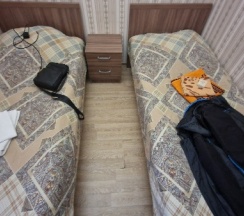Небольшая гостиница очень близко к железнодорожному вокзалу. Можно договориться о раннем заселении или позднем выезде. Легкий завтрак входит в стоимость номера. Можно дополнительно заказать обед и ужин. Есть комната для приëма пищи типа буфета. В номере был чайник, холодильник, телевизор. Сам номер с душевой кабиной, на каждого несколько полотенец своего цвета — меньше вероятность перепутать. Минус звезда за небольшие поломки, стоит обратить внимание и починить своевременно.