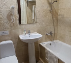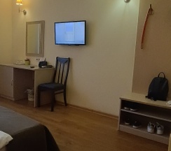 Современный интерьер. Мебель как новая. В номерах чисто, белье белоснежное. Кровати удобные. Есть холодильник, кондиционер, фен. Парковка на территории. Администраторы приветливые и заботливые.