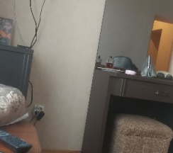 Минусы: несвежеее напольное покрытие, которое хочется рекомендовать почистить, освежить тюль и шторы (минимум стирка).