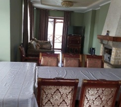 Что бросается в глаза в первую очередь - размеры дома и помещений. Хоромы под 350 квадратных метров. Все клмнаты большие, даже при наличии мебели есть где развернуться. В нашем распоряжении 2 номера на первом этаже и 3 номера на втором. Снизу поменьше - с одной двуспальной кроватью. Сверху побольше, кровать и раскладной диван в каждом. На первом этаже один туалет на оба номера, на втором - в каждом номере совмещенный санузел туалет+душевая или туалет+джакузи.