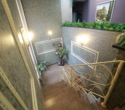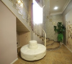 А когда приехали в эту усадьбу, сразу захотелось остаться. Сначала радует вид снаружи: много зелени, ели, можжевельники, туя, оригинальный стиль здания. Далее это не проезжая часть, а довольно тихое место, вокруг малоэтажная застройка, много деревьев, хотя центр. Внутри все богато и со вкусом сделано, картины, лепнина,кафель, цветы, хотя ценники здесь очень гуманные. Все очень чисто, всегда пахнет свежестью, свежее белье. Красивая кухня-столовая со всем необходимым. Персонал очень вежливый, заботливый. В общем, за 6 дней отдохнули душой и телом!