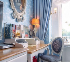 Интерьер номера – воплощение музыки в архитектуре. Нежная гамма цветов, мягкие линии и ажурные узоры, прекрасный вид на блинную гору. В распоряжении гостей: