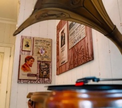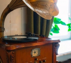 * музыкальный центр "Граммофон" с функциями прослушивания виниловых пластинок, CD, MP3, радио