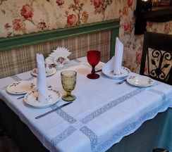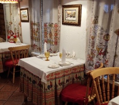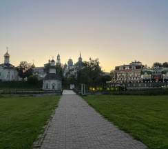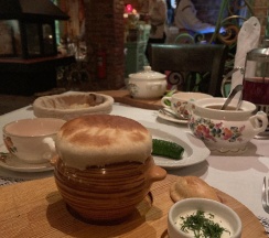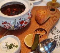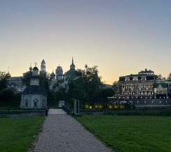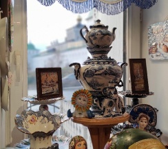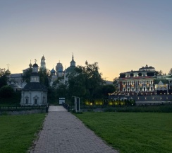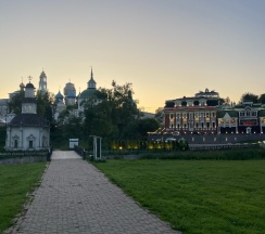 Приехали на день из Москвы в один из майских праздников. Просто увидели на улице и зашли. Нам понравилось и еда, и обслуживание. Официанты вежливые и в русских рубахах. Еда вкусная, интересно обыграна русская традиция в еде, при этом и креветки полно увидеть в меню, и европейские десерты. Мы заказали винегрет (принесли с килькой, маслятами и капустой моченой), уху, картошку с белыми грибами, тушёную капусту, колдуны (пельмешки) с белыми грибами, чай с чабрецом, крем-брюле. Квас был очень вкусным. Все блюда хорошие, ну разве что картофель жареный можно было чуть меньше зажаривать )) на зимней веранде хороший вид на Лавру, правда, немного душновато было. Сувенирный магазин прямо в ресторане тоже интересный. Интерьер в ресторане довольно своеобразный, "дорого-богато', перегружен рустикальным декором, но важно понимать, что иностранным туристам хочется увидеть все и сразу, так что ок ))) туалет чистый и с хорошим ремонтом. Очереди в гардеробе не было.