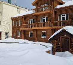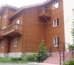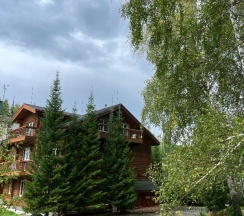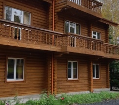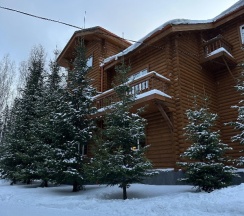 Дом из оцилиндрованного бруса с высокими потолками, большими окнами и балконами(с видом на ухоженный лес).В комнатах, ресторане всё практично, функционально, натурально. По максимому присутствует дерево! Уютно!