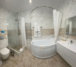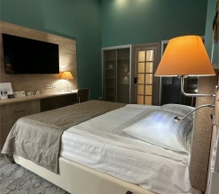 Апартаменты Люкс - это новый номер самой высокой категории в Триумф Отеле. Самый большой по площади номер в отеле состоящий из двух комнат, пространства для тренировки с велотренажером, оснащенный двумя санузлами, душевой кабиной, ванной и сауной.