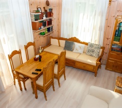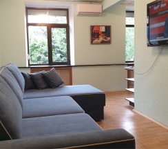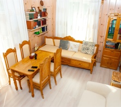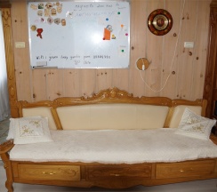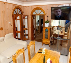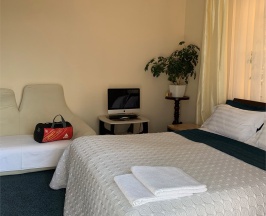 Номер оптимален для группы из 4 человек с ребёнком. Большая двухместная кровать и большой раскладной диван для двух взрослых и ребенка.