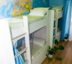Уютная светлая комната c балконом для курения. Вместимость 8 человек. Имеет два типа спальных мест: Верхний ярус - обычное спальное место.