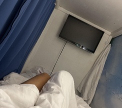Всём доброго дня! Вчера был в этом хостеле. Забронировал место через сайт, приехал раньше, немного, до времени заселения, меня встретили дружелюбно, сразу небольшой экскурс по хостелу, всё рассказал, показал, озвучил правила проживания. Постельное бельё на высшем уровне, реально работающий телевизор на нижнем ярусе коек. Очень чисто. Ходил босиком. Тихо и спокойно. Можно приготовить на кухне еду на свой вкус, посуда присутствует. Вообщем остались только положительные эмоции! 👍. Единственное неудобство, так это храпящий сосед😕 А так всё замечательно. Да и магазин продуктовый рядом, если надо купить продукты. Однозначно 5 звёзд.
