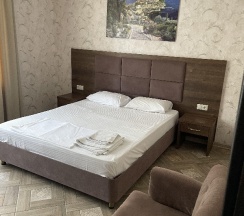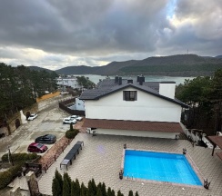 Отдыхали семьей - Отличная локация отеля в Абрау-Дюрсо! Чистота и порядок, хороший теплый бассейн, при отеле кафе есть, где можно вкусно покушать. Кровати удобные, белоснежные простыни, просторный номер в целом! Вокруг сосны, лаванды и лес, тишина умиротворение. На день рождение жены воспользовались деревянной беседкой, где нам накрыли и организовали праздник. Еще и баня до кучи, хоть и не большая, но банщик супер. Рядом все нужные достопримечательности и магазины, кафе. Приедем еще раз.