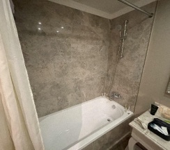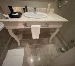 Гостиница очень приятная! Персонал вежливый, тактичный, всё рассказали. Номер чистый, есть халаты и тапочки, гигиенические принадлежности. Они даже позаботились о том, чтобы оставить включенным кондиционер в такую жару (когда я приехала, было 36 градусов).