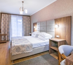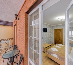 Балкон с уличной мебелью и видом на бассейн или зелёный двор. Санузел в номере. Всё, чтобы чувствовать себя как дома. Номера находятся на 2 и 3 этаже в 1 корпусе.