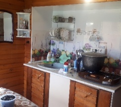 Очень понравилась усадьба , уютный домик , красивое белье , все удобства есть . Туалет в домике , кухня всем оборудованна , вода горячая , рядом беседка. Душ во дворе , есть баня , большой бассейн . Всё ухоженно , цветы , газон . Недалеко от усадьбы , смотровая площадка с великолепным видом на озеро.