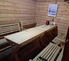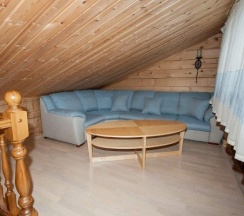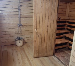 На 1 этаже есть зона отдыха с диванами и телевизором)Так же отдельная пристройка двухэтажная баня)