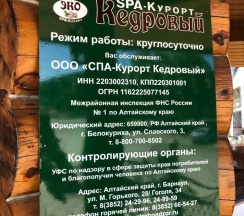 Продуманный до мелочей интерьер, качественное обслуживание, вежливый персонал- всё это SPA-Курорт Кедровый! Остановили свой выбор на нём и не пожалели! Территория отеля хоть и небольшая, но очень ухоженная и уютная с бассейном, и беседками - в которые можно заказать обед или ужин из ресторана Таёжный( расположенного в отеле). Милый уголок с качелями. Территорию пересекает река Белокуриха, через неё можно перебраться по симпатичному мосту, ведущему к беседке с мангальной зоной и бассейну. А какая тут баня!!! Спасибо всёму персоналу SPA-Курорта Кедровый и ресторану Таёжный за качественное обслуживание и приятную атмосферу!