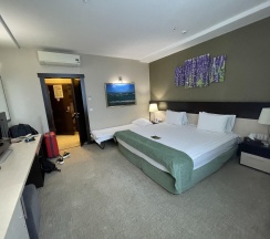 Приехали семьёй, взяли семейный люкс. Номер большой, детская спальня очень уютная. Ребёнок остался в восторге от бассейна, а мы оценили, что можно и спортом заняться в фитнес-клубе. Ресторан на крыше это отдельное удовольствие, шикарный вид на город и вкусная еда. Порадовало, что можно оставить багаж на хранение после выезда, это очень удобно, когда ещё есть время на прогулку)