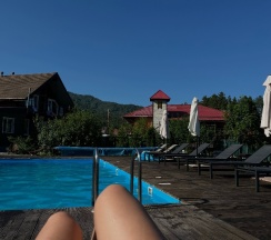 Красиво, сервисно, шикарная баня, были в сентябре, бассейн ещё подогревали, хотя он на улице находится) умеренные цены, инфраструктура в 1-1,5 км от базы, до Катуни 150 метров, у каждого номера своя беседка, 2уровневый номер: всё продумано до мелочей, жили 4 ночи/5 дней, за это время нам сделали уборку, заменили белье и полотенца, очень уютно, современный ремонт, рекомендую 😎👍