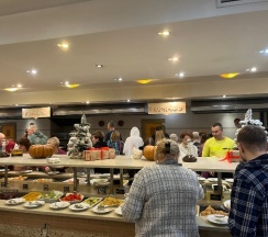 В этот приезд ресторан по организации- на два! В наплыв гостей не хватает столов , заранее открыть доп.зал не судьба. Быстро кончаются чашки для чая/кофе, хлеб и некоторые блюда на раздаче, оперативно не выносят. Большие очереди за едой. Грязные приборы попадаются. В рабочие дни ещё терпимо, а выходные-беда. С администрацией ресторана надо что-то делать...