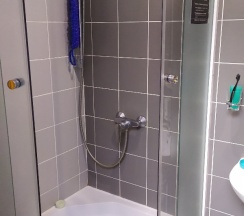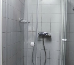 Общий душ в целом неплох, нет какой-то очереди, но он не очень комфортный в плане использования.