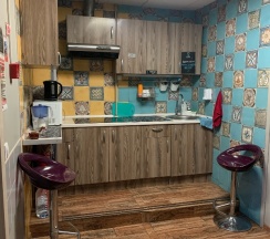 Кухня чистая, маленькая, вода с непонятным запахом и привкусом. Приходилось иногда ютиться с другими постояльцами за плиту, мытьё посуды и т.п. Неплохо, но не очень удобно.