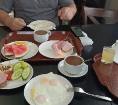 Завтрак превзошел ожидания. Даже, в пятерках бывает хуже. Повар очень внимательный и вежливый.