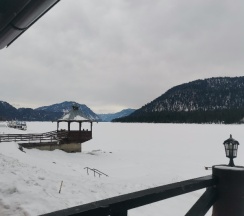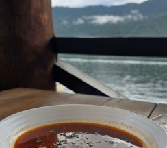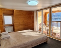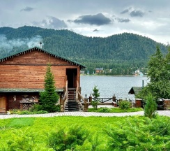 Номер достаточно просторный для троих. Чисто. Стены деревянные - идеально, лучше не придумаешь! Шторы утром закрывают от солнца и позволяют выспаться. Матрас и подушки очень удобные на основной кровати. Белье чистое. Полотенца на всех. Уборка раз в 3 дня, можно регулировать, что менять, что нет, что добавить, если нужно. Андрей заранее говорит время и уточняет потом по вотс апп. Видели уборку после отъезда гостей, там мыли полностью даже окна🌷. В номере есть небольшой холодильник (нам хватало), водонагреватель 50 литров (нам хватало), чайник, кружки по количеству проживающих с чайными ложками, досточка разделочная. Вода в бутылках только в день заезда. Батарея обогревающая (нам не понадобилась, ТК лето). Кондиционера нет, но нам не было так жарко, чтобы нуждаться в нем. Телевизор (работает хорошо), кстати, вай-фай, возможно, из-за приезда в этот период премьер министров разных стран в регион был не всегда, может другие причины, нам хватало интернета от мобильного оператора (на трассе не везде, в поселке хорошо работает). В туалете и душевой есть мыло в дозаторе, стакан для щеток и пасты, шампунь и гель для душа в пакетиках, фен, туалетная бумага с запасом. Аа, еще тапочки одноразовые и ложка для обуви на входе👌. Территория очень чистая, ухоженная, деревянные домики на фоне зелени и реки смотрятся очень колоритно. Но главный плюс здесь - шикарный вид на реку (у нас 14 номер, в 13 тоже так - это номера над кафе, есть еще пара сверху (думаю, вид еще лучше и в других домиках тоже есть вид на реку прямой! Объехав со всех сторон и всех концов, нам кажется, что это идеальное расположение! Кроме того, большой плюс расположение рядом с основными магазинами и кафе, 3 минуты на машине до супермаркетов и магазинов у моста. Пешком минут 20, но тротуаров тут нет. 🤷 🤦