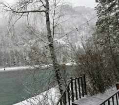 Вид из окон на бирюзовую Катунь просто великолепен! Причем такой домик (категории Люкс с видом на реку) только один на территории (в нём 2 номера).