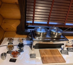 Домики теплые, есть все необходимое: моющие, много полотенец, халаты, тапочки, чай в пакетиках и травяной, кофе, губка для обуви и много разных мелочей. Вода из-под крана питьевая. Но и бутылочки с водой каждый день приносят. Мы от уборки отказались на период проживания.