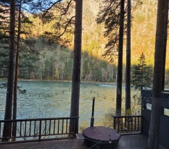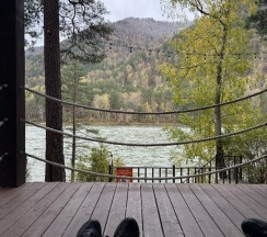 Очень душевный отель. Заселение прошло очень быстро, мы заранее заполнили карту гостя и ксерокопию паспорта. Очень милые девушки на ресепш. Проводили до номера,всё рассказали. Территория большая, ухоженная. В номерах идеальная чистота. Есть вода, чай, кофе, гигиенические принадлежности. Зона спа нам тоже понравилась. Территория красиво подсвечивается в тёмное время. Есть тренажерка на улице, релакс-зоны с видом на Катунь.
