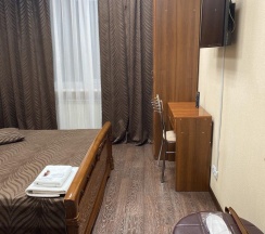 Номер стандарт для одного или двух гостей . Площадь 17 кв.м. В номере: большая двухспальная кровать (160/200),жк телевизор, холодильник, чайник, письменный стол, два стула,журнальный стол,шифоньер,набор из двух полотенец, шампунь, гель(саше),тапочки в индивидуальной упаковке. Собственная Ванная комната оснащена тёплым полом,сушилкой для полотенец ,феном, жидким мылом для рук,одноразовой зубной щеткой