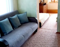 Остались только положительные эмоции! Красиво снаружи, чисто внутри! Ходила босиком по всему первому этажу в белых носках, даже на кухне, они остались чистыми!!! Очень удобное расположение, простые номера, недорого.