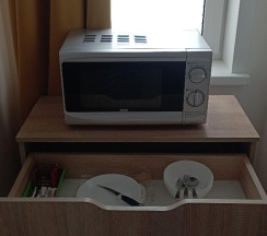 - на этаже есть микроволновка, посуда и гладильная доска для стандартных номеров