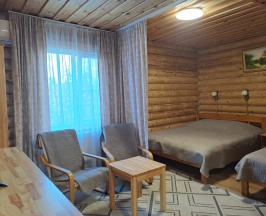 Отличная гостиница👍 муж бронировал улучшенный номер, всё чисто, есть кондиционер, номер в стиле русской избы- деревянные стены. В стоимость входил завтрак на выбор из 10 блюд, выбрали пельмени с бульоном🤤 Очень вкусно🔥 также есть своя парковка при отеле, разместили наши грузовики. Спасибо за гостеприимство 👍👍👍
