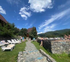 Природа шикарная, созданы все условия для отдыхающих с детьми. Есть площадки, батут, теплый бассейн. Территория облагорожена, понравилась мангальная зона, беседки. Очень достойно и завтраки сытные.