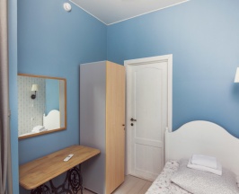 у меня был одноместный номер. для человека, которому просто нужно спокойно где-то переночевать, чуть отдохнуть и помыться – лучше не придумаешь. в комнате стоит кровать, табуретка, шкаф для одежды, зеркало и телевизор (мне не пригодился, но может кому-то будет как приятное дополнение). постельное бельё чистое, выдали два белоснежных полотенца, мусор из комнаты выносили каждый день.