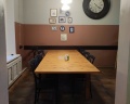 кстати, меня даже удивило насколько хорошая техника стояла на кухне: чайник прям будто только купили. плиты нет (но об этом при бронировании написано), микроволновка тоже хорошая стоит, но я ей так и не воспользовалась. есть кран с питьевой водой. зал с огромным обеденным столом и большим количеством стульев. почти всегда за ним сидела одна)