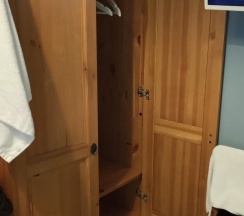 Из минусов: нет смены белья без доплаты, не всегда свет на лестнице включался сразу, приходилось как крот пробираться в темноте. В комнатах для вещей есть в кроватей ящик, но с очень неудобной крышкой. Крышка эта все равно не закрывается на замок, так что возможно рациональнее было бы убрать верхнюю крышку. Так, людям не пришлось бы выдвигать в узком коридоре ящик на полную длину, тревожа при этом сопутствующими шумами соседей.