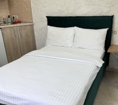Отличные номера с кухней, есть полотенца, меняют ежедневно, бельё меняют каждые два дня, можно сдать вещи в стирку, близко море, хорошая транспортная развязка и в центр и в Адлер с Красной поляной. Рядом магазин Перекресток, кофейни и пиццерия