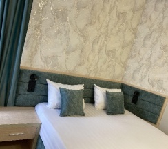 Отель на 4. Номер у нас был Комфорт-удобный, большой. Расположение удобное. От моря совсем близко 6- 10 мин. пешком. Приехали мы в 13.00.,нам сказали погулять ( номер убирают), обещали позвонить. Гуляли почти два часа., звонка не дождались. Пришли без звонка. Нам сказали, что звонили. Но у нас не было пропущенных.