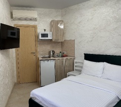 Удобное местоположение, рядом остановка, до моря по прямой 10 минут. Отель чистый, есть небольшая кухонька, прямо в номере можно готовить. Все необходимое есть.