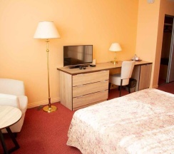 Гостям предлагают для размещения номера Стандарт, Полулюкс, Люкс и Апартаменты. Во всех есть телевизор, мини-холодильник, удобное рабочее место и Wi-Fi.