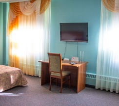 Однокомнатный номер, площадью 20 кв. метров с двумя полуторными кроватями. Санузел совмещен с ванной комнатой. В номере имеется автономное горячее водоснабжение круглый год, фен, ЖК-телевизор с дистанционным управлением, минихолодильник, сейф, телефон с выходом на междугороднюю и международную связь, косметический набор, набор для чистки обуви, набор для чистки одежды, комплект полотенец. Смена белья производится ежедневно. В номере к услугам клиента питьевая бутилированная вода. Номер разделен на рабочую зону и зону отдыха.