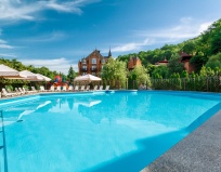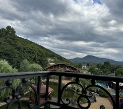 Отдыхала сутки в спа корпусе, номера очень гармоничные, шумоизоляция на высоте, не было слышно даже проезжающийся под окном трактор, наш номер располагался на втором этаже, но вид из окон был шикарный. Завтрак просто супер, на день рождения поздравили и подарили вкуснейший тортик!
