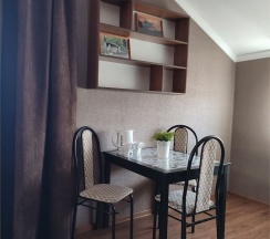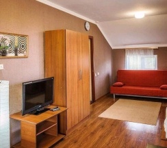 Понравилось: Большой и чистый номер. В номере есть все: Микроволновка, холодильник, стол. В каждой комнате электрические батареи - можено регулировать теммпературу. Парковка рядом с домиком.