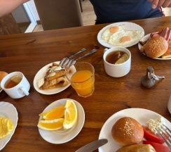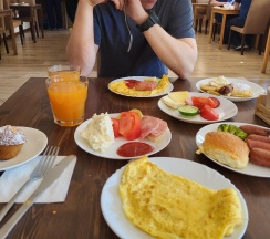 Питание завтраки по системе шведский стол. Все вкусное, свежее разнообразное. На заказ готовят яичницу и омлет, все быстро. Официанты очень шустрые, раздача постоянно пополняется, пустой не бывает. Каждый день были свежие арбузы и дыни.